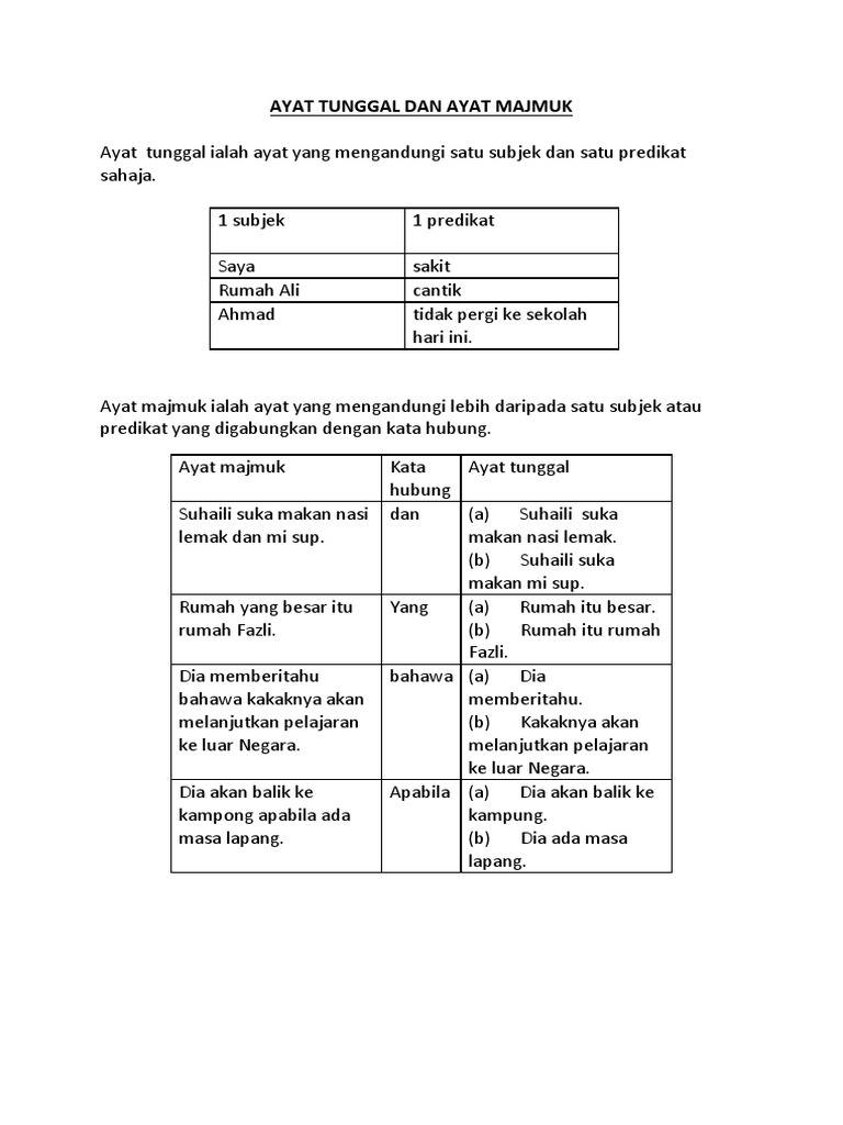 Ayat Tunggal Dan Ayat Majmuk Pdf