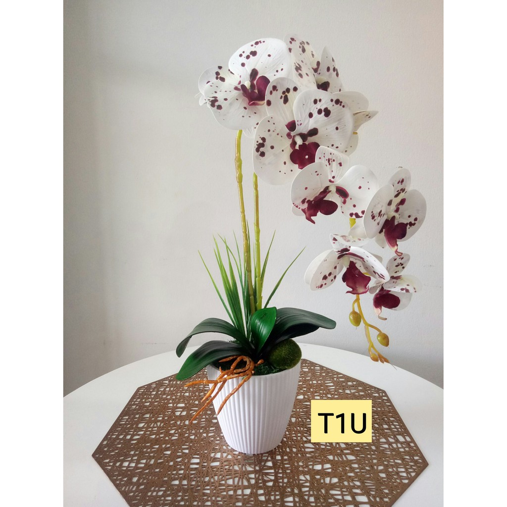Gubahan Bunga Hiasan Orkid Latex Dengan Pasu Siap Gubah Artificial Flower With Pot Shopee Malaysia